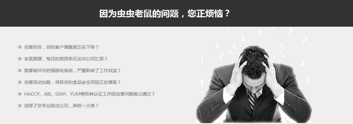 公司擁有數十名技術顧問,技術專員經過相關部門培訓,全部持證上崗,技術嫻熟。公司采用******的機械設備,使用的藥品全部符合WHO(世界衛生組織)的標準,無色、無味、無毒、對人體無害的國際******藥品。所使用的滅鼠、滅蟑等藥物均按國家規定,使用全國城市愛衛會專家委員會推薦和認定的藥物。公司實行業務與技術一體化,即銷售者也是施工者,以專業的技術加上敬業的精神******達到衛生檢驗合格標準,使客戶滿意!